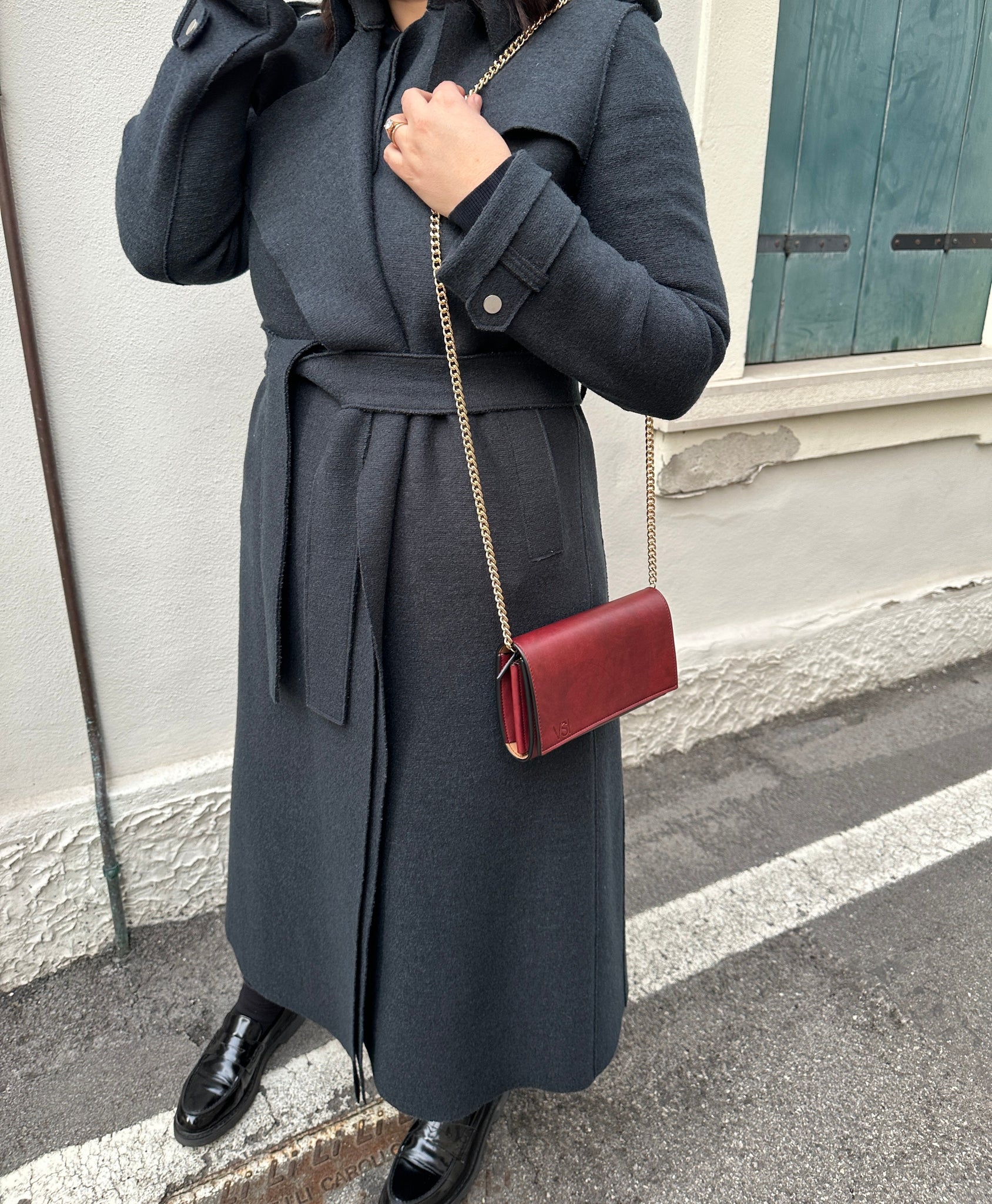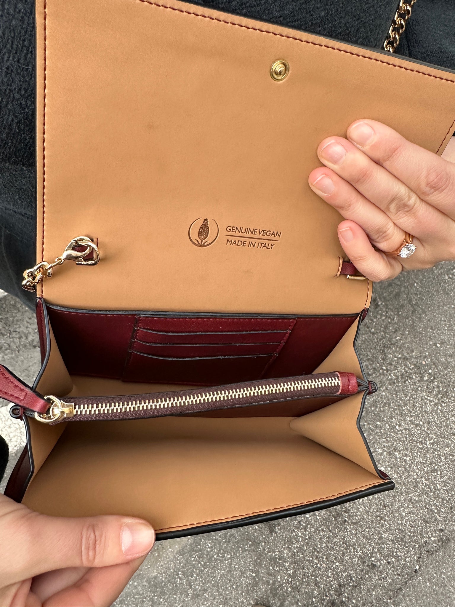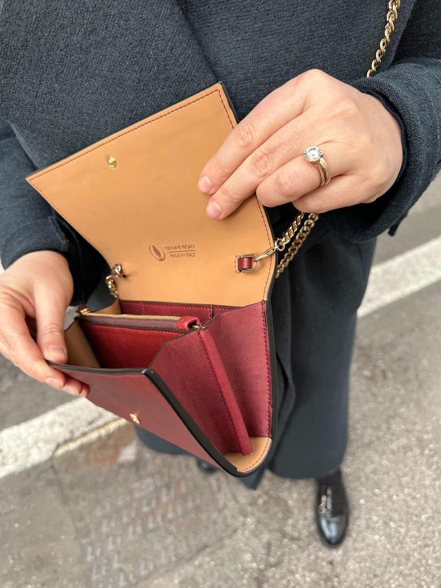 By removing the shoulder strap, the multifunctional bag becomes a practical and spacious wallet.