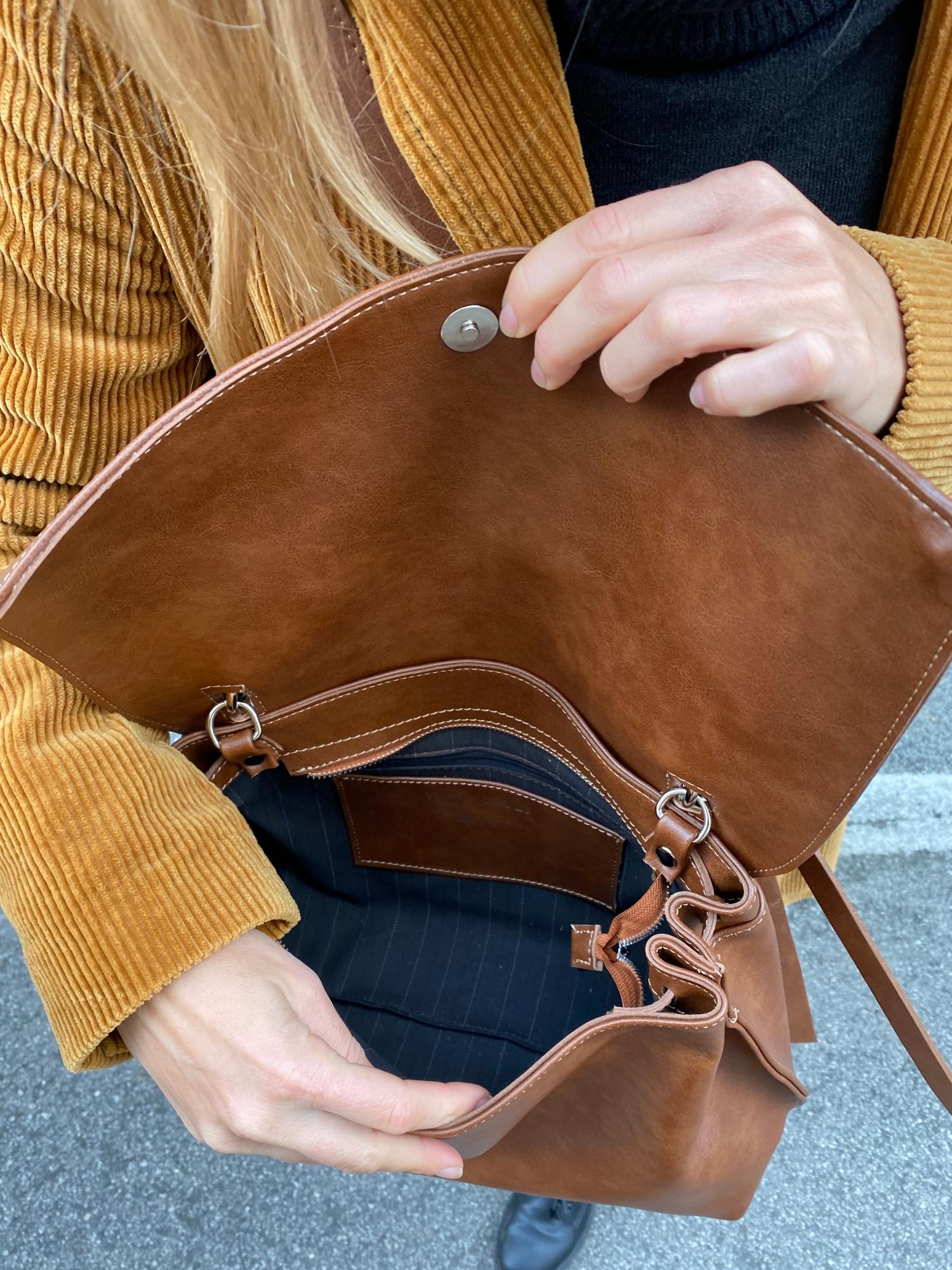Woman handbag with removable fringes detail