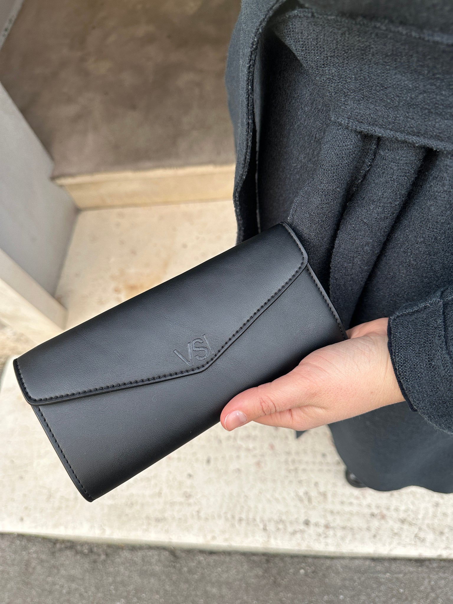 Black smooth vegan wallet for documents and card holders
