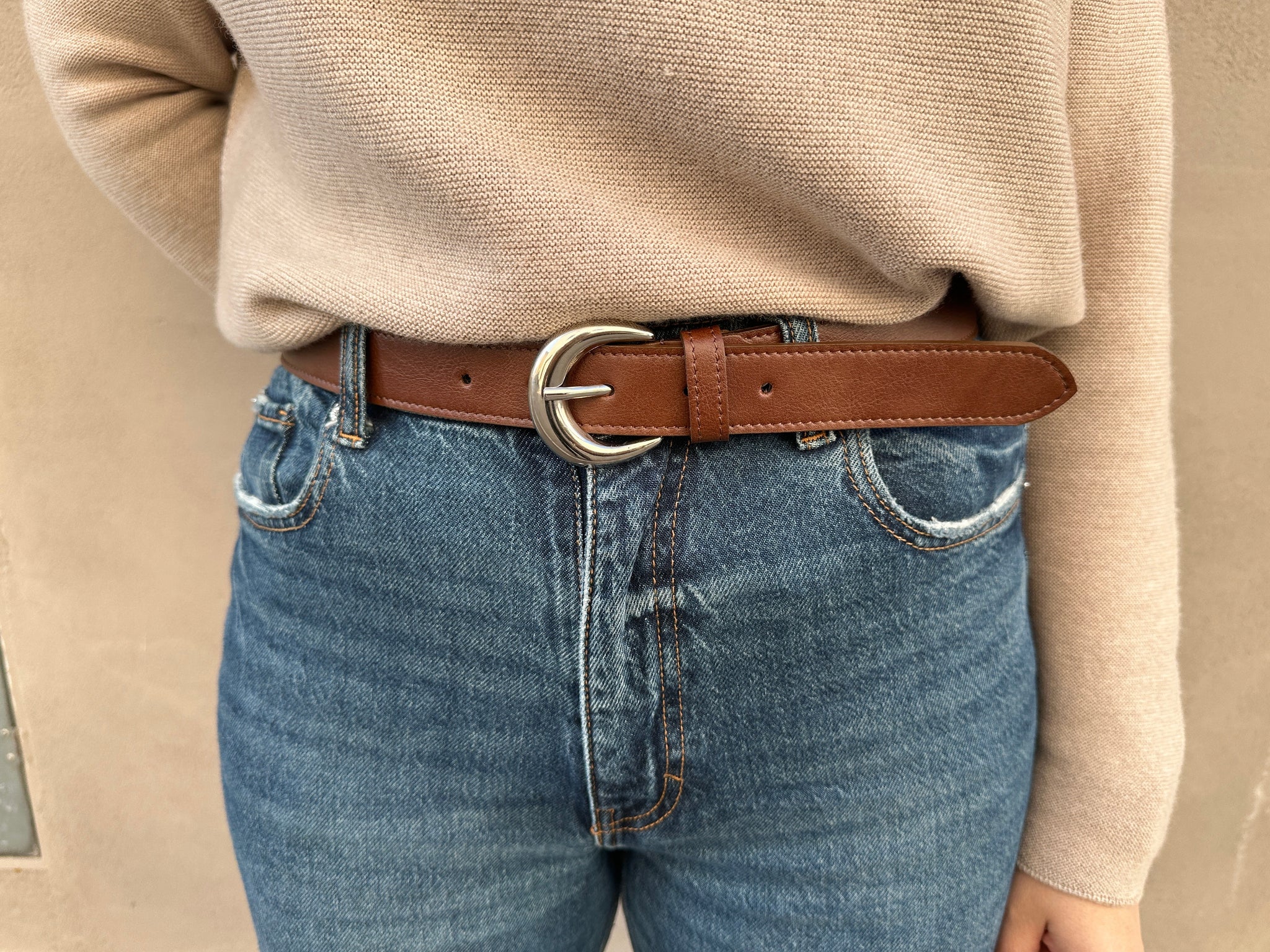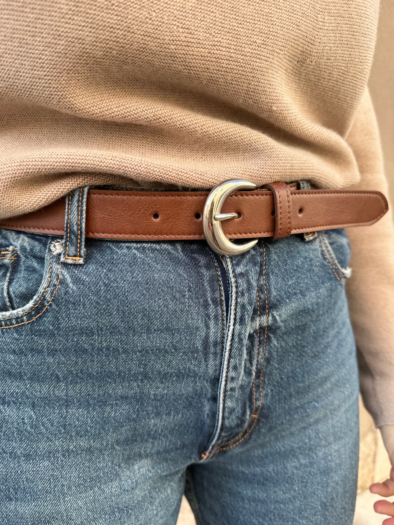 VSI VIV Cintura vegan marrone mais fibbia tonda argento artigianale Made in Italy