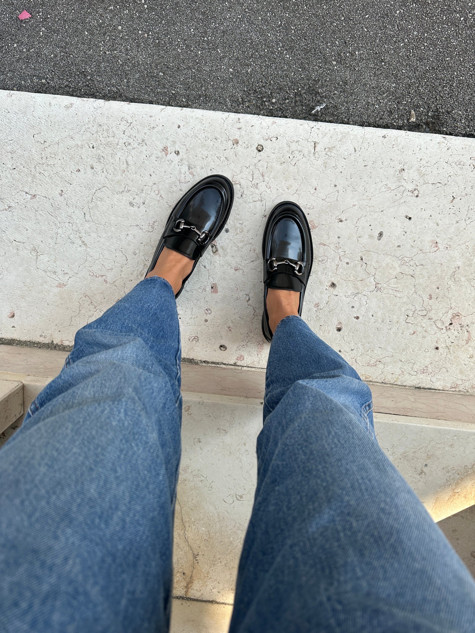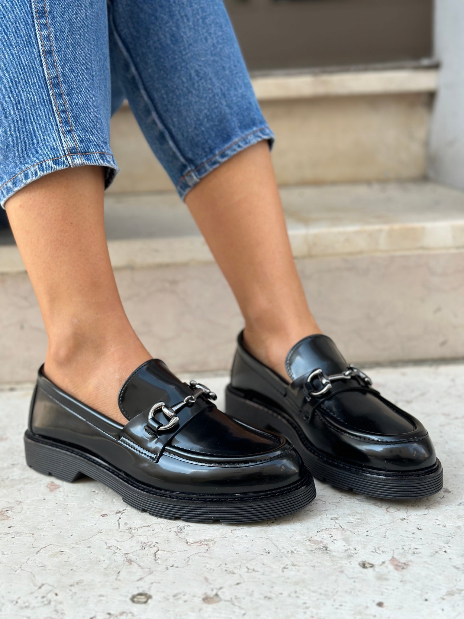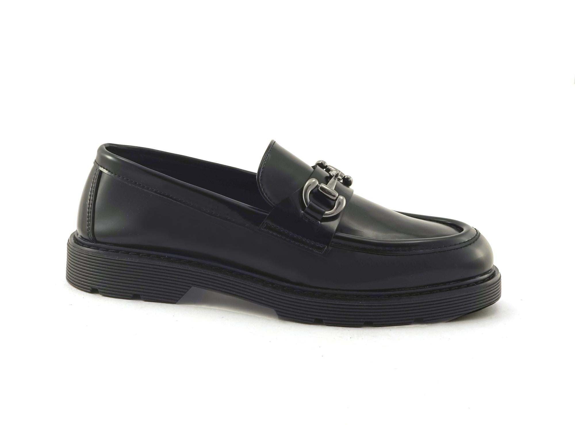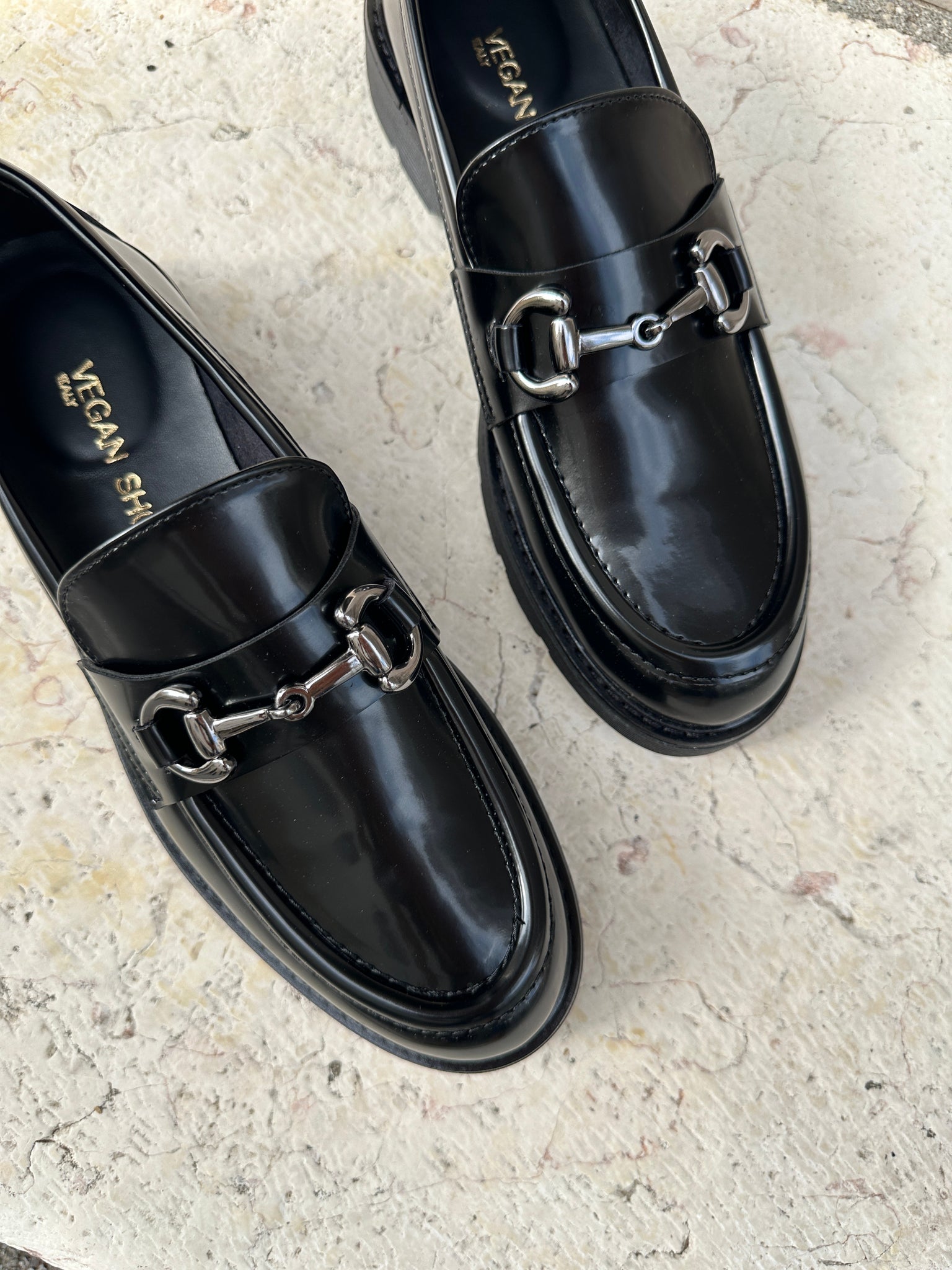 Shiny black vegan loafer