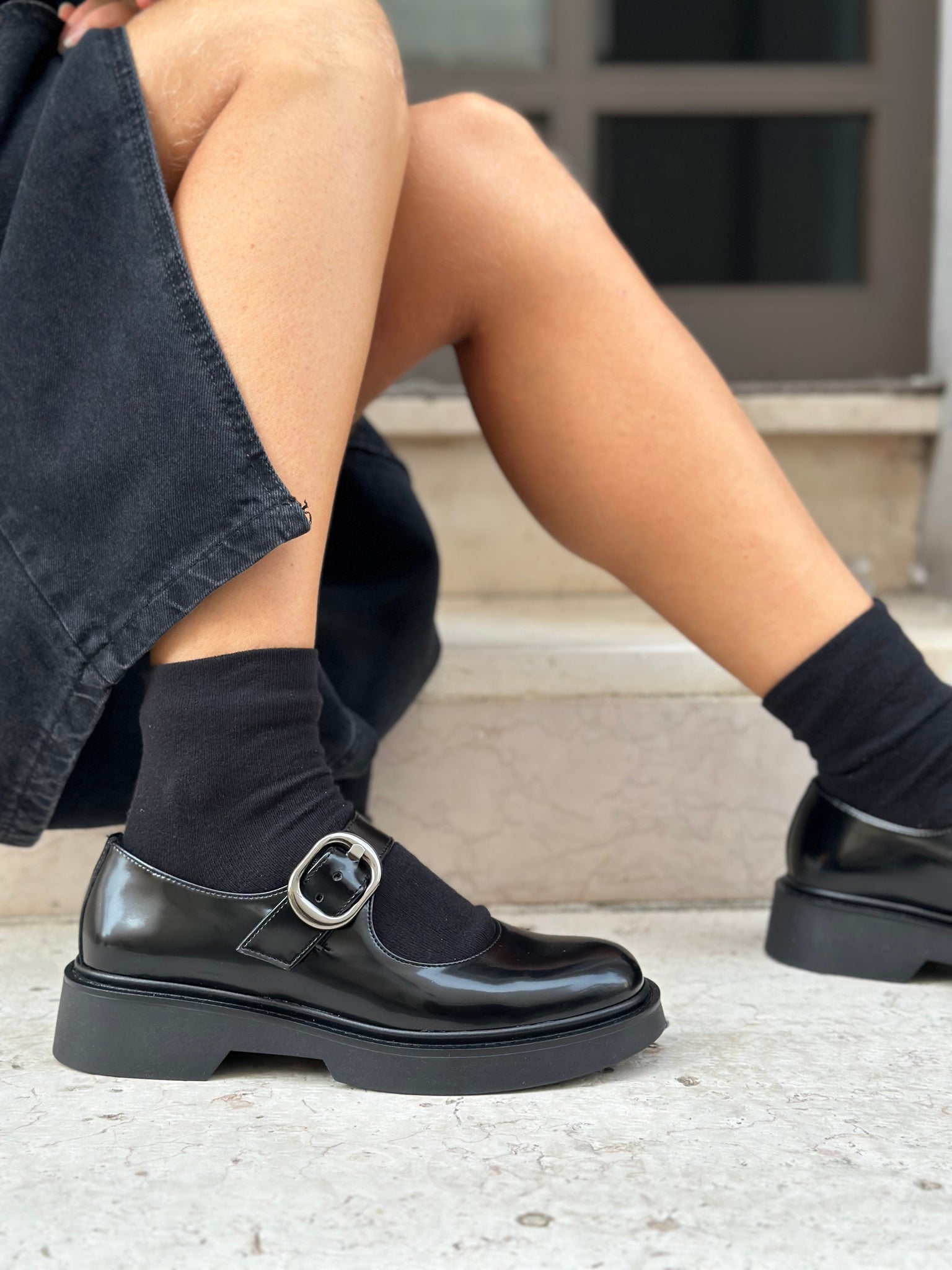 Black patent baby shoes