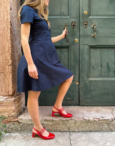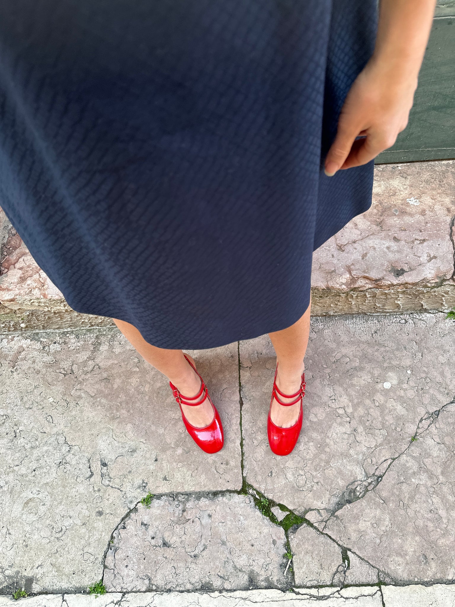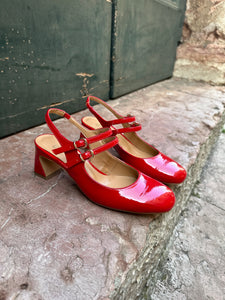 Mary Jane model with two adjustable straps on the instep and elastic fit
