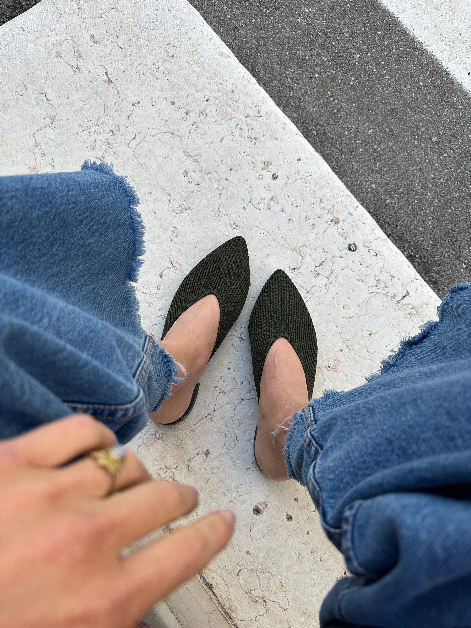Upper in soft olive-colored microfiber