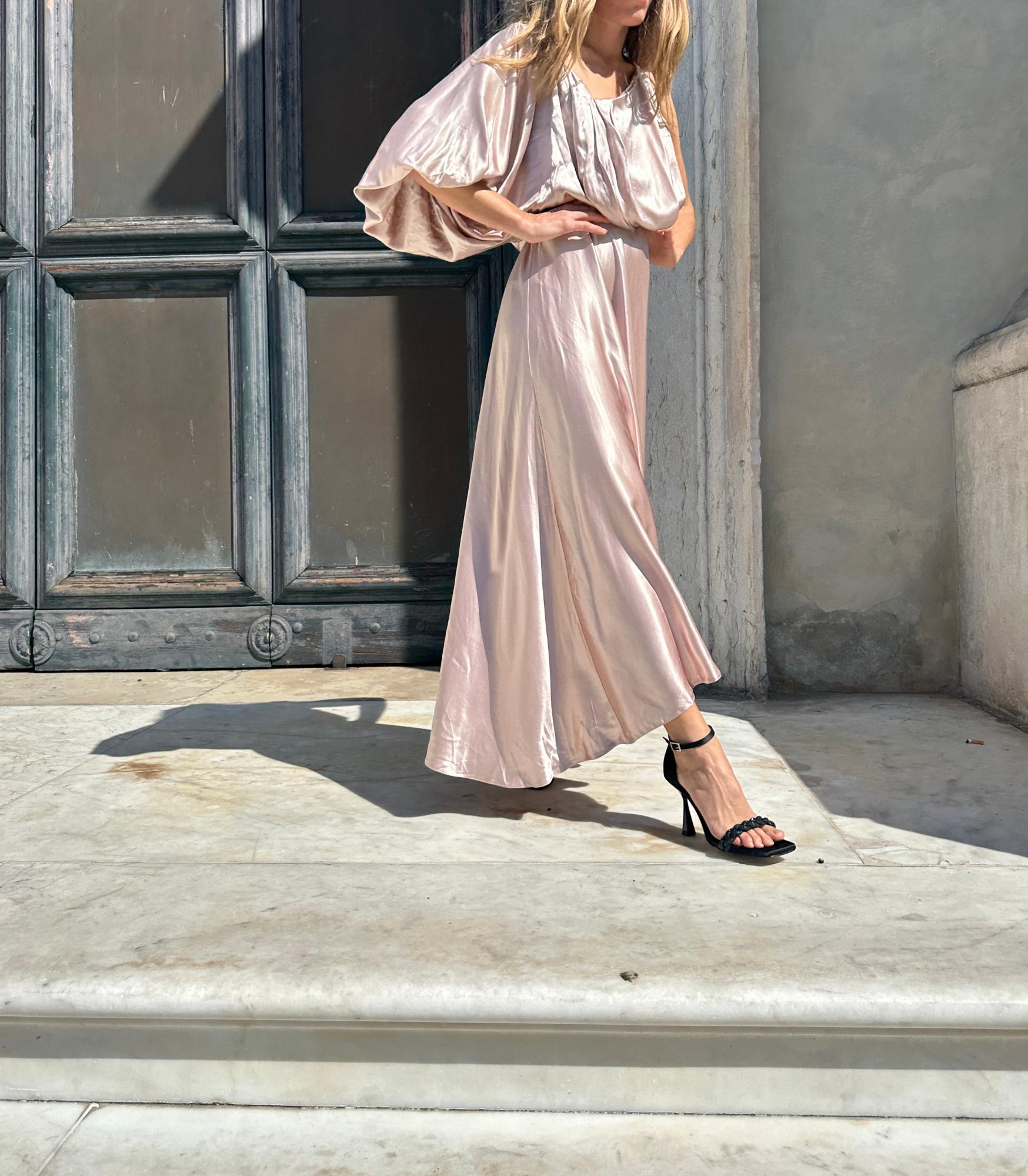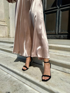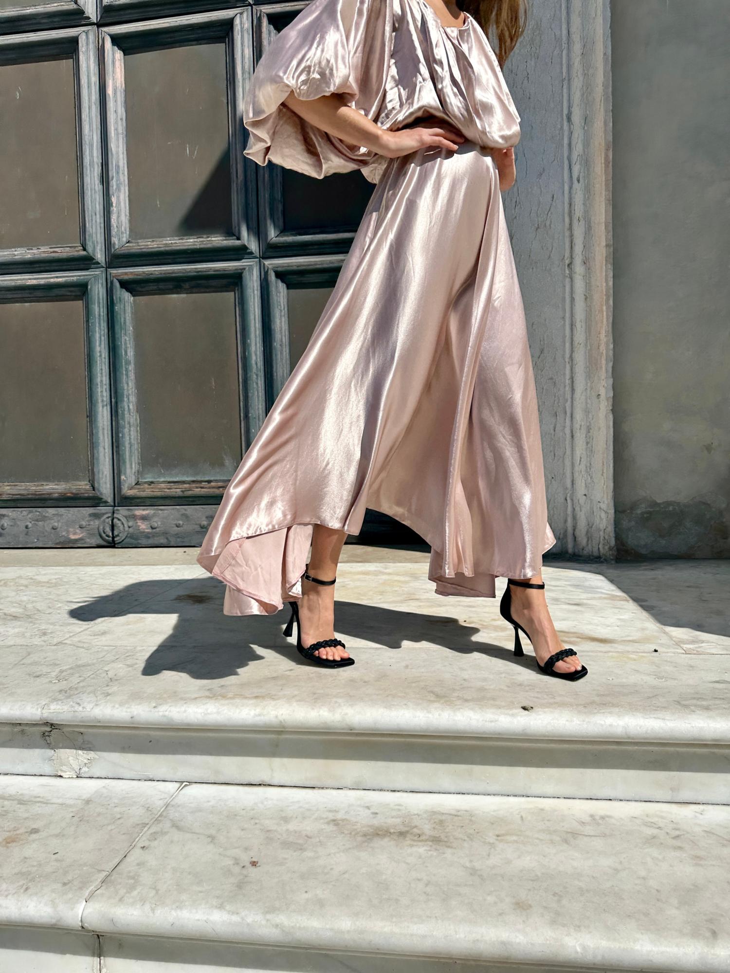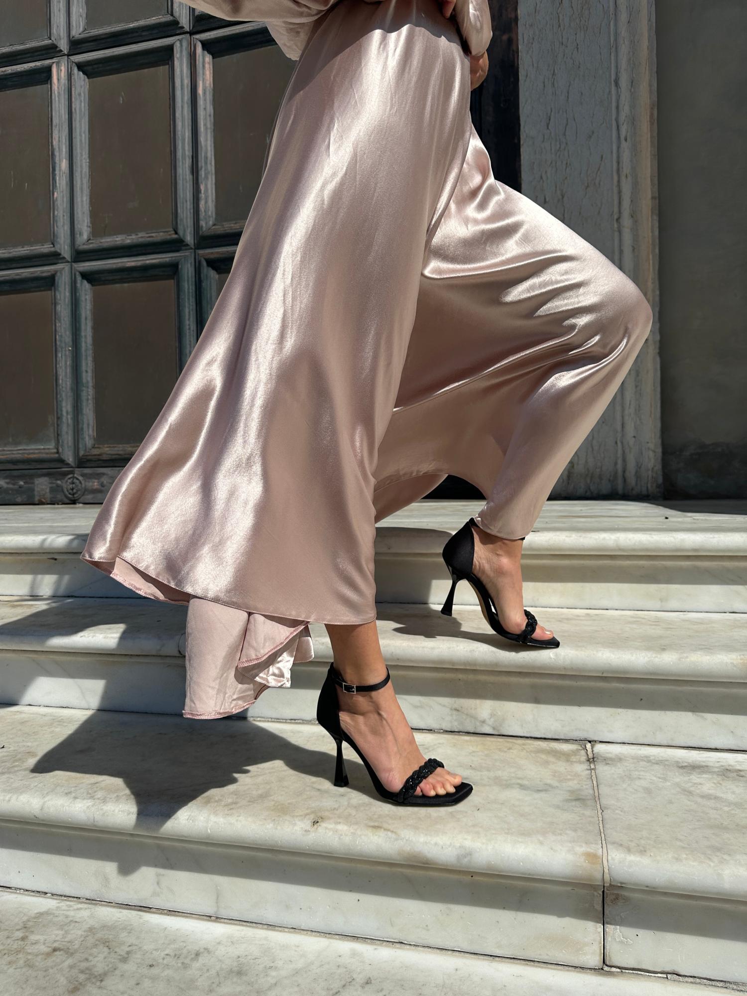 Upper in satin effect fabric