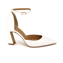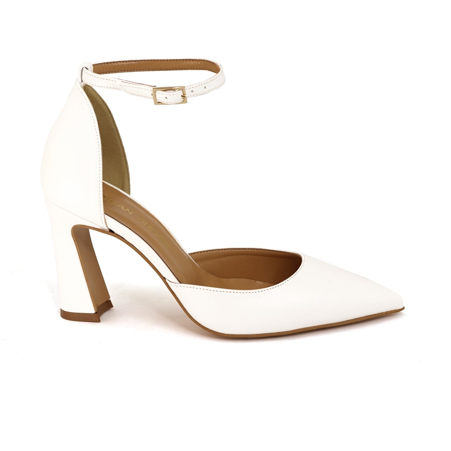 Comfortable wedding shoes with wide heel and thin ankle strap to adjust the fit