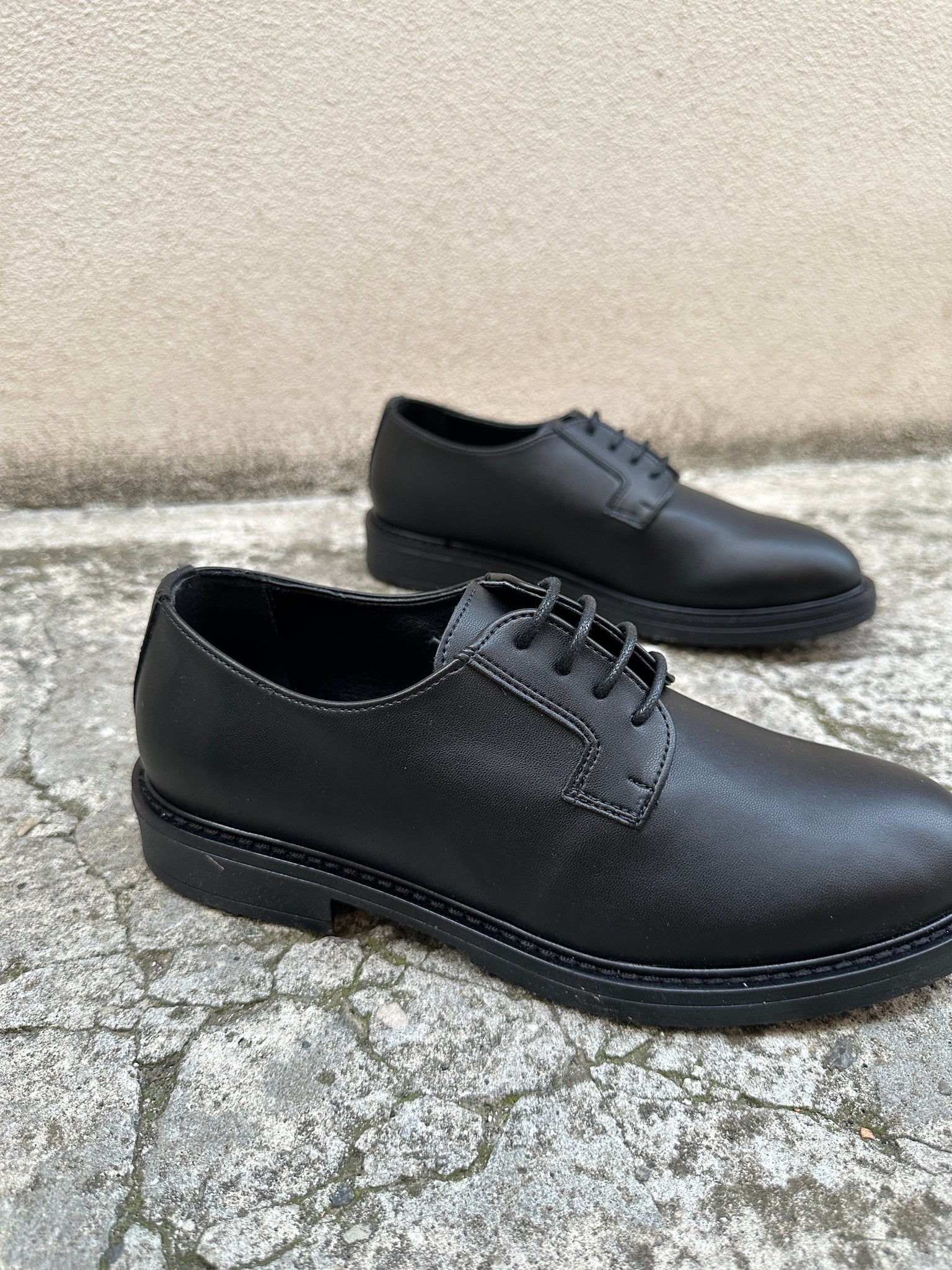 Waterproof black Derby model with minimal lines