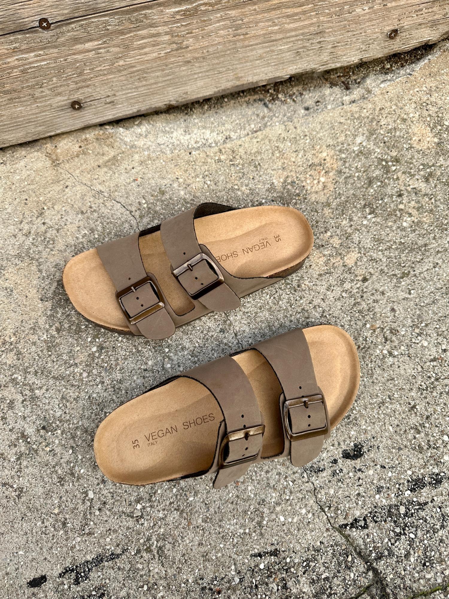 Upper in soft, mocha-dyed Nubuck-effect microfiber
