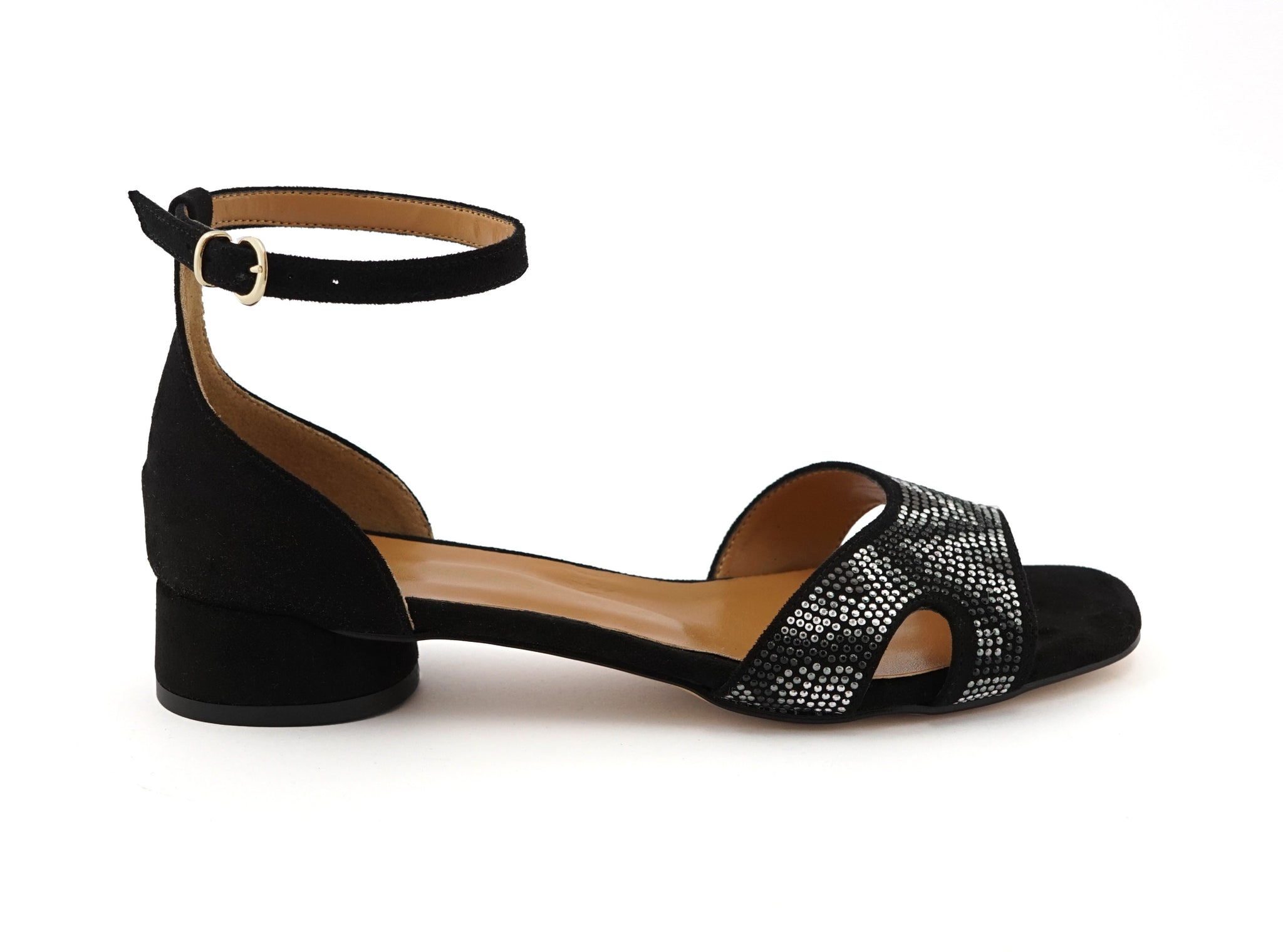 Model with adjustable ankle strap and closed heel