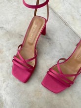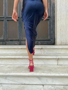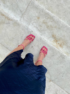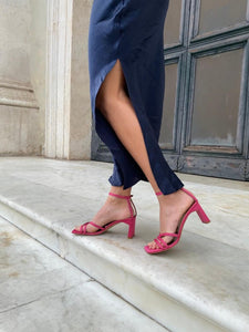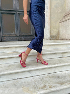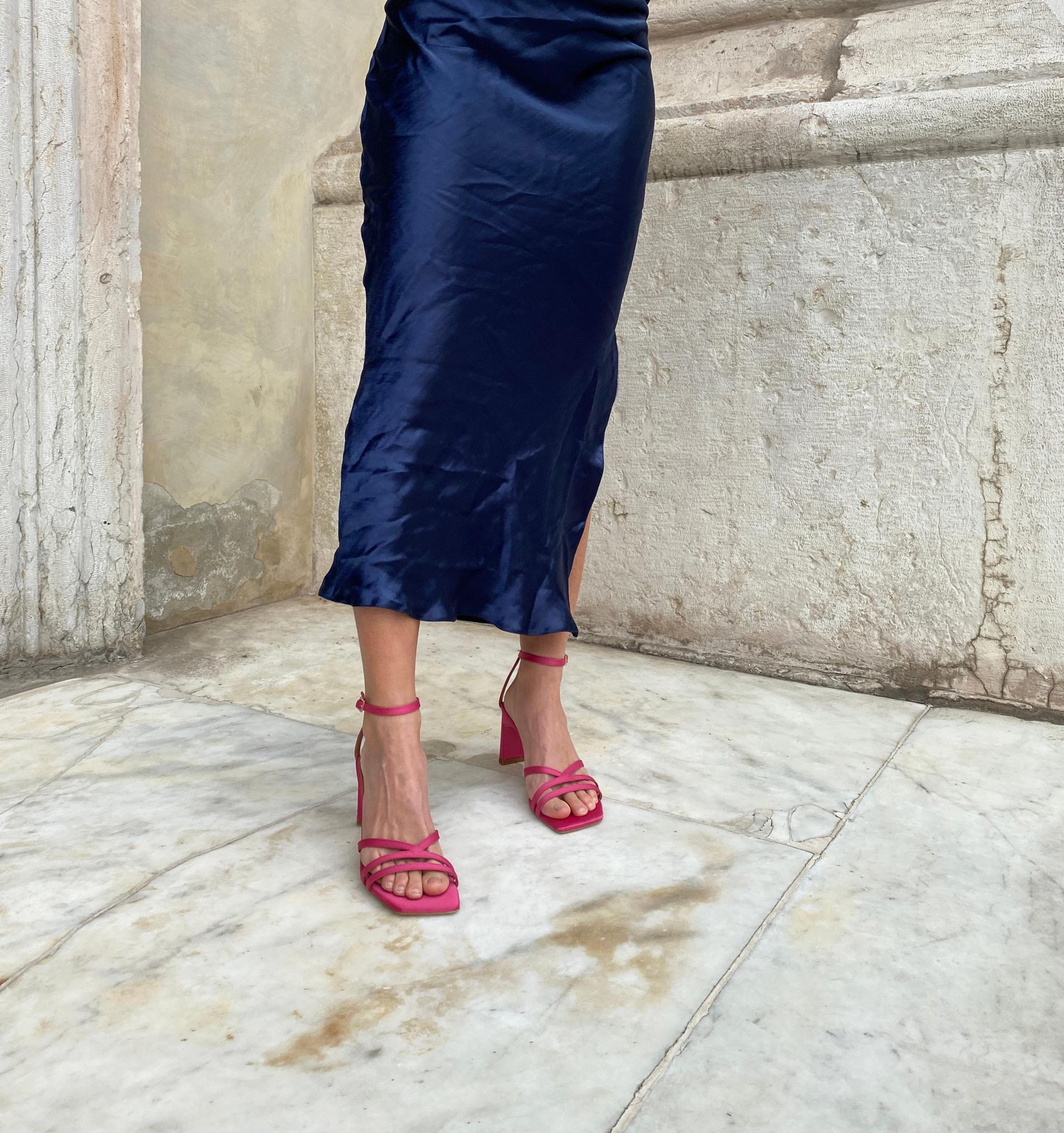 Upper in fuchsia satin-effect fabric