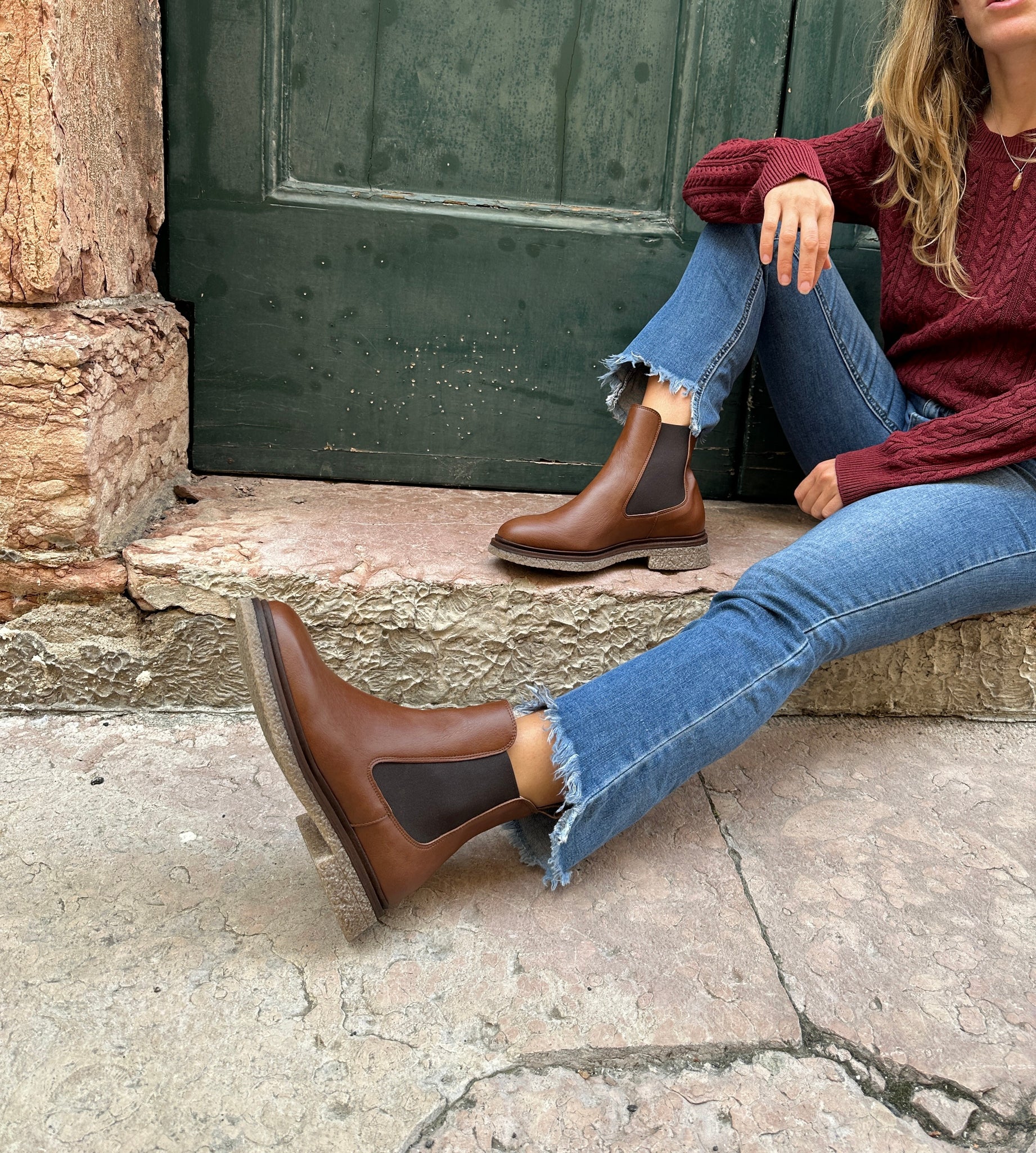 Stitched sole in non-slip rubber with Para effect